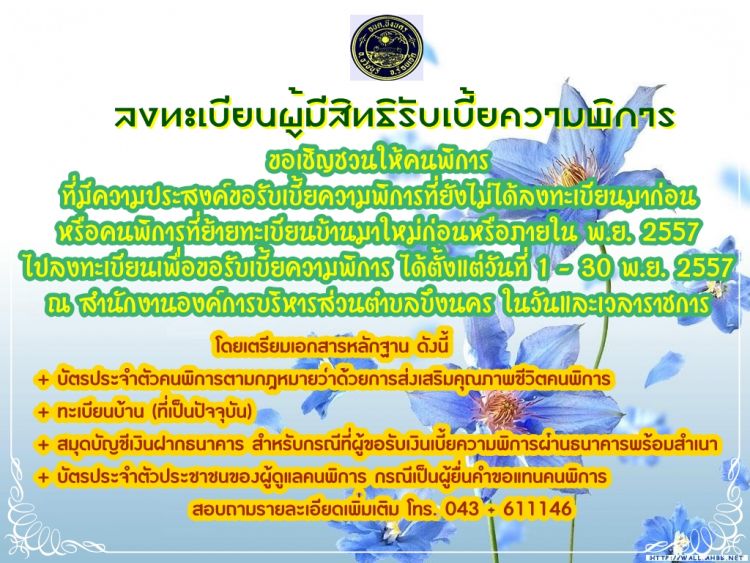 หัวข้อ :: การรับลงทะเบียนผู้สูงอายุ คนพิการ ประจำปีงบประมาณ 2559