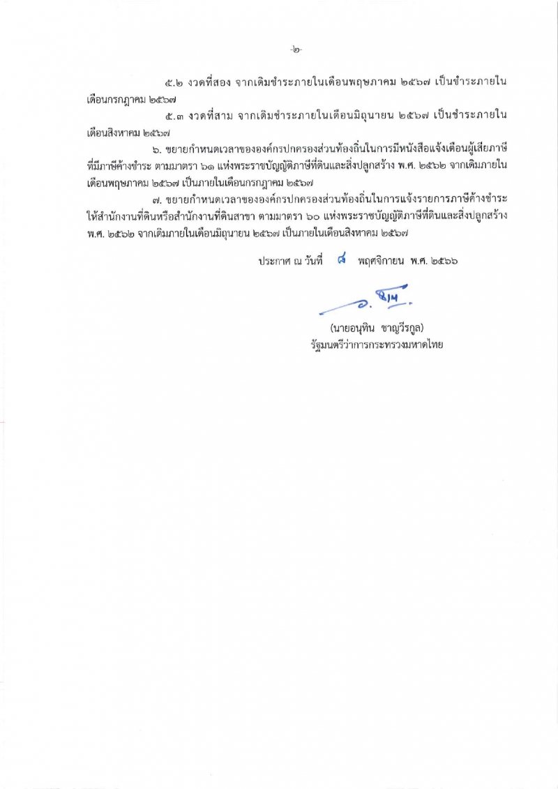 หัวข้อ :: ขยายกำหนดเวลาดำเนินการตามพระราชบัญญัติภาษีที่ดินและสิ่งปลูกสร้าง พ.ศ.2562 ประจำปี พ.ศ. 2567